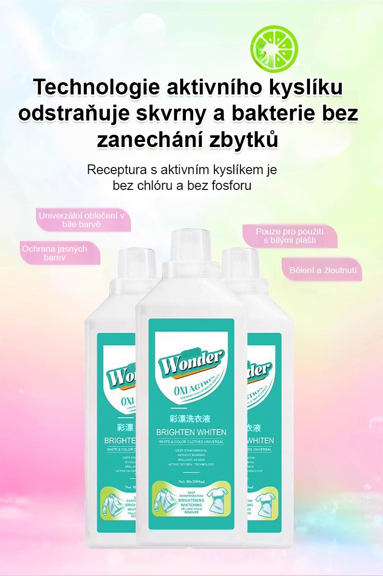 Jít na zesvětlení a rozjasnění aktivním kyslíkem čisticí kapalina na barevné prádlo